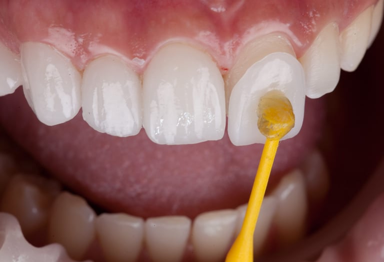 När du har missfärgade tänder efter en skada eller önskar ändra formen på en tand kan det vara ett alternativ att behandla med fasader. Det finns fasader framställda av porslin eller komposit, skillnaden är hållbarhet och pris.